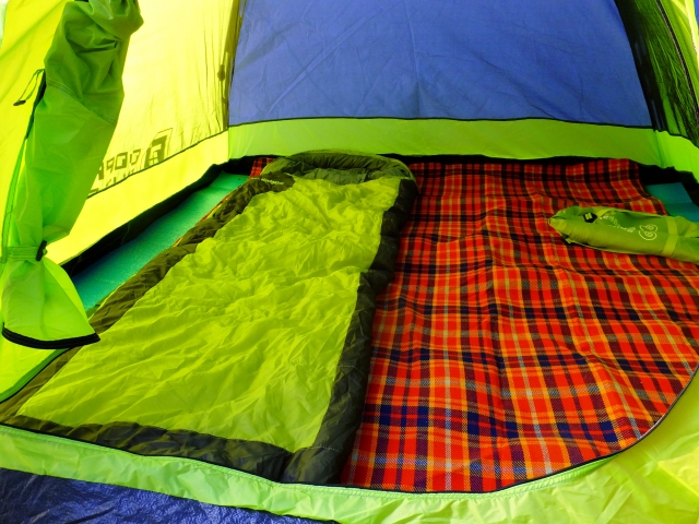 テント内にはマットや寝袋を敷いて、自分好みの空間を演出する楽しさもあります。