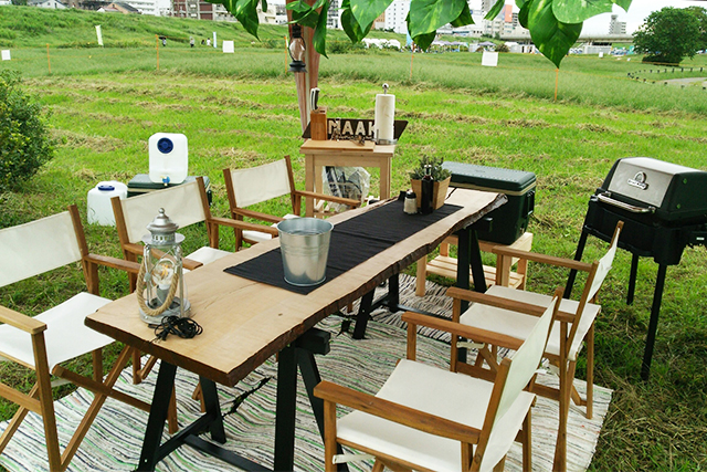 バーベキューのテーブル周りは、少しの配置替えで印象が大きく変わります。