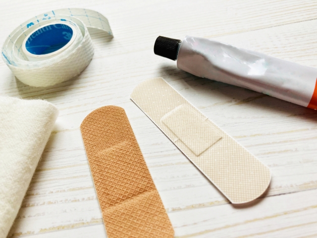 絆創膏や消毒液、冷却シートなどの簡単な救急セットを用意しておくと安心です。
