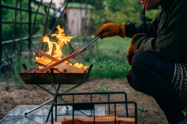 気温の高い時間は部屋の中で遊んでからバーベキュー、という流れは、子どもにも無理がなくておすすめ。焚き火代わりのコンロで焼くおやつマシュマロも人気です。