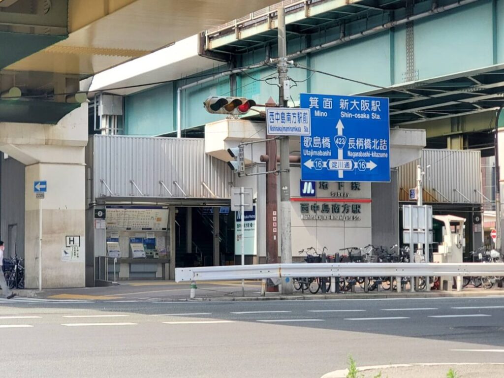 駅から南(新御堂筋の高架下・淀川方向)に向かって歩いていきます。