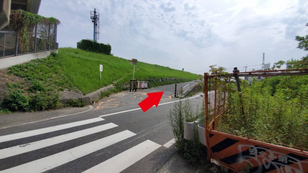新御堂筋の高架下を淀川方向に向かって歩いていくと、淀川河川敷公園西中島地区の土手が見えてきます。