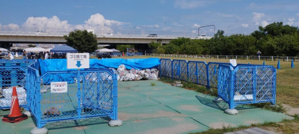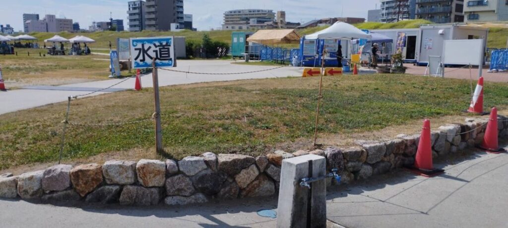 淀川河川公園西中島地区の有料期間は数カ所に仮設トイレが設置されています。トイレは受付周辺にあります。土日祝やイベント開催日には女子トイレが混雑しやすくなりますので注意が必要です。トイレットペーパーが切れている場合もあるため、念のためティッシュペーパーを持参しておくと安心です。